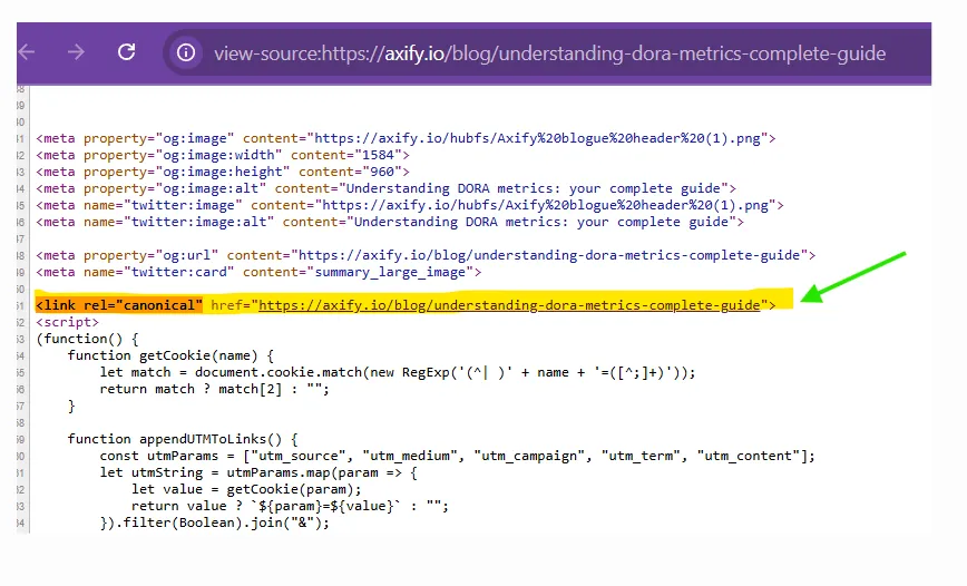 For example, our client Axify uses canonical tags to help search engines understand which URLs represent the main version of a page.